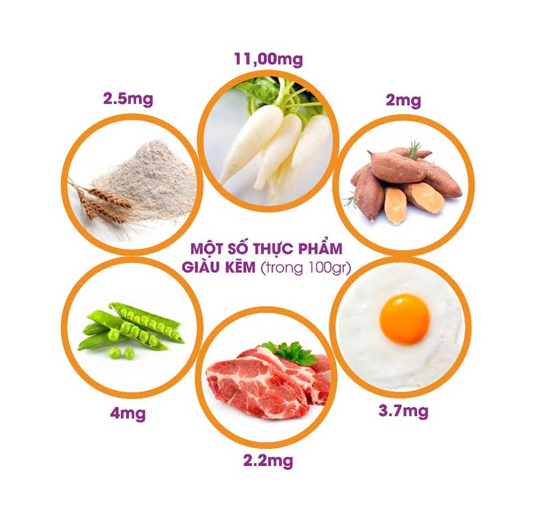 Kẽm có thể tìm thấy trong thực phẩm.
