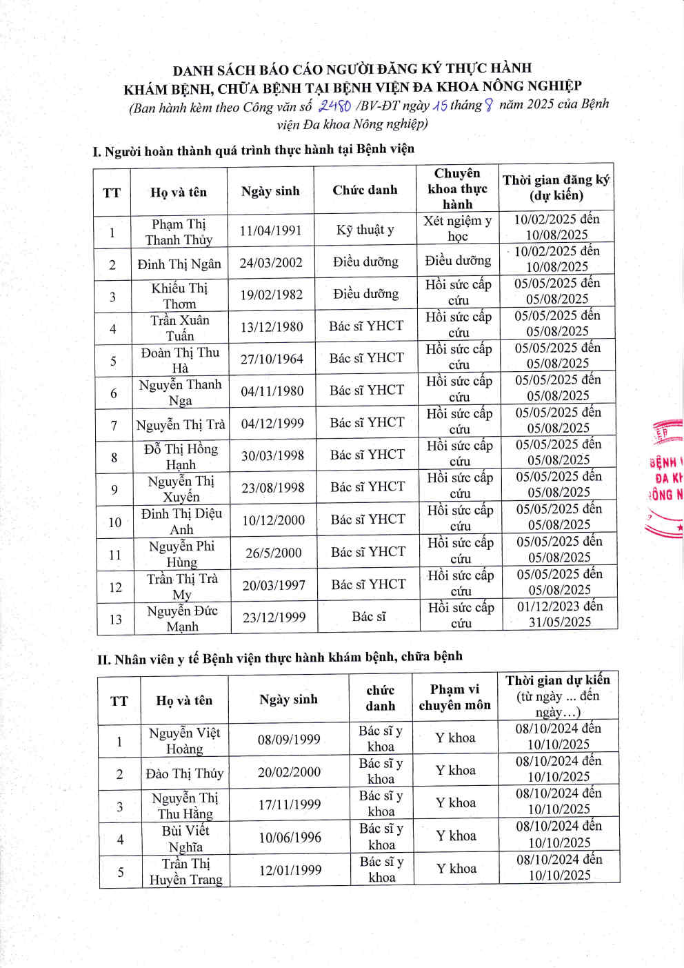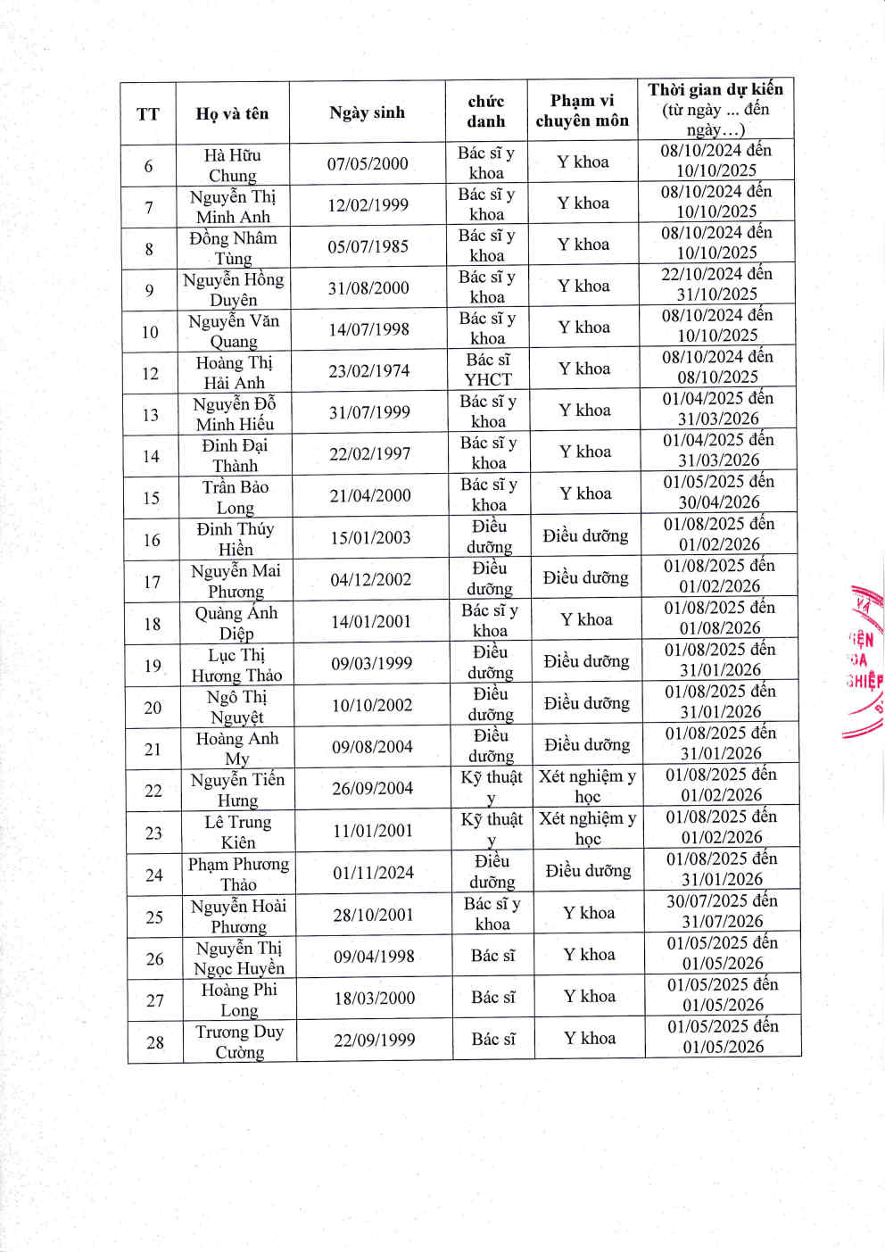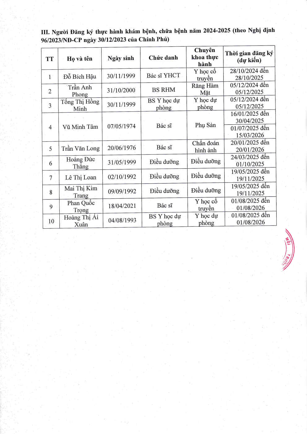 Báo cáo danh sách người đăng ký thực hành khám bệnh chữa bệnh như sau: