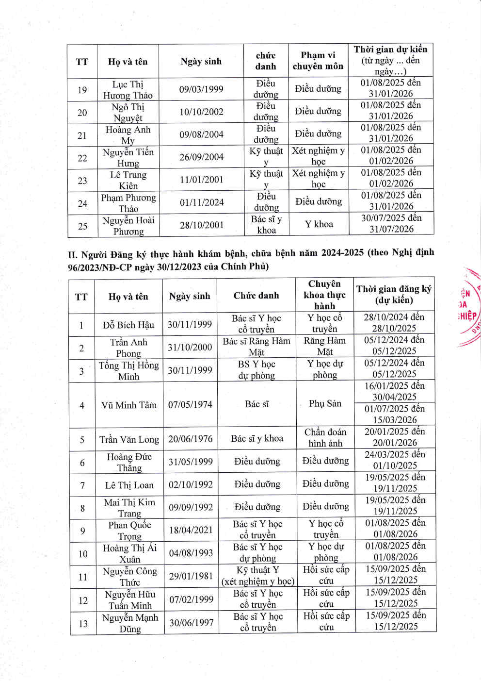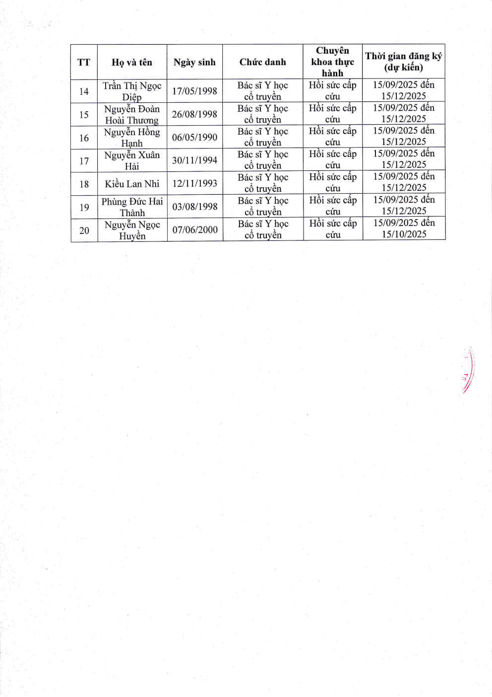 Thông báo người đăng ký thực hành khám bệnh, chữa bệnh (tháng 12/2025)