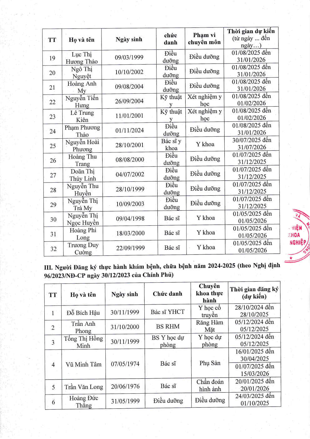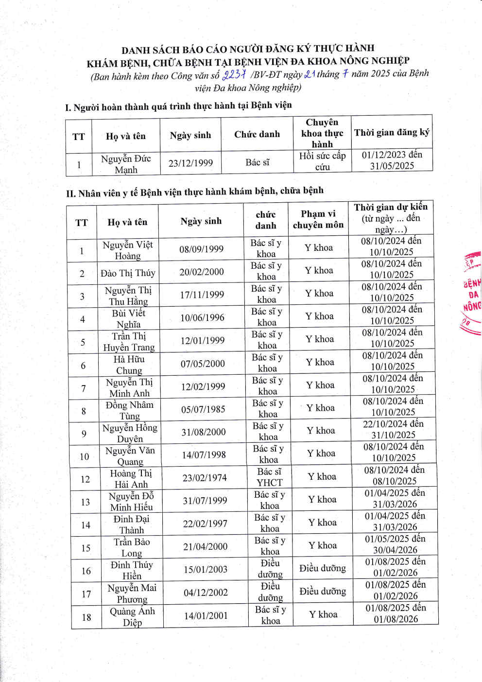Tên cơ sở hướng dẫn thực hành khám bệnh, chữa bệnh: Bệnh viện Đa khoa Nông nghiệp (Bộ Nông nghiệp và Môi trường).