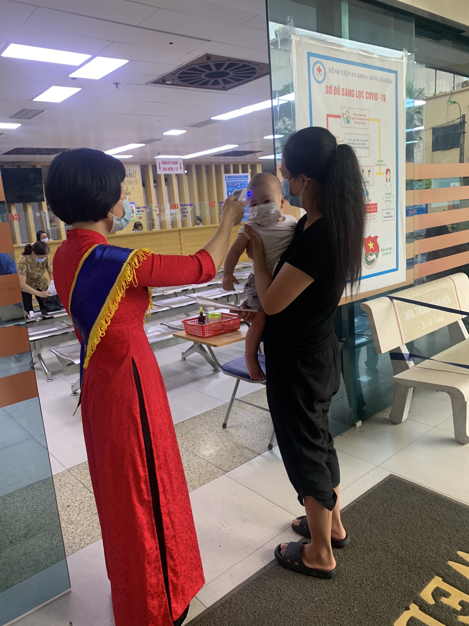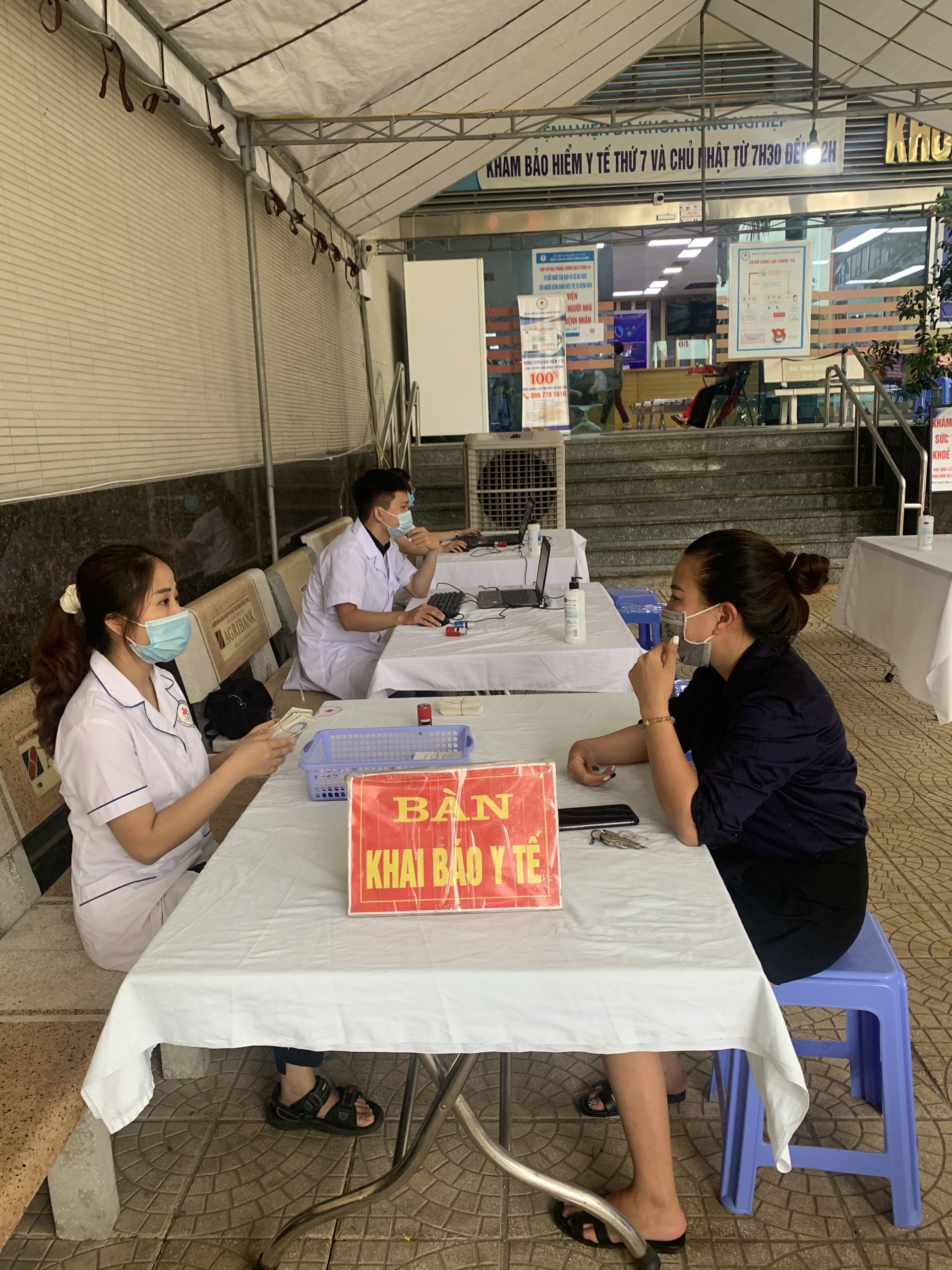 - Vòng 1: sàng lọc, bệnh nhân sẽ được đo thân nhiệt, xịt khử khuẩn, khai báo y tế và khai báo lịch trình di chuyển (ngoài cổng chính của Bệnh viện).
