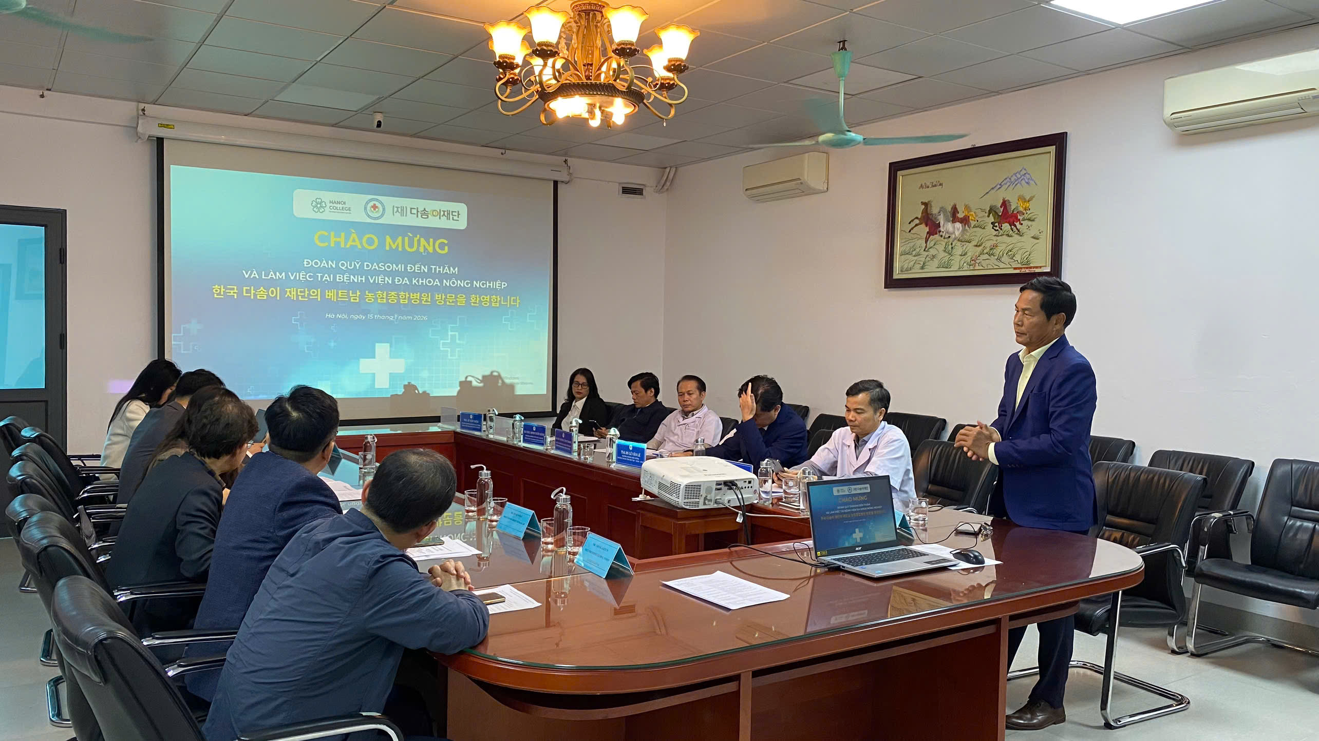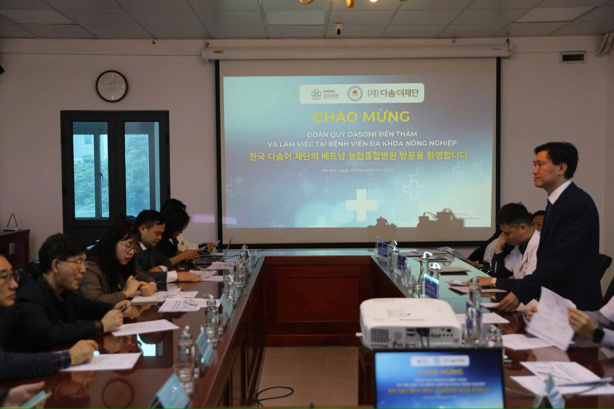 Chiều ngày 15/01/2026, Bệnh viện Đa khoa Nông nghiệp hân hạnh đón tiếp đại diện Quỹ Dasomi (Hàn Quốc) cùng các đối tác trong nước đến làm việc, trao đổi và thống nhất đề xuất Đề án xây dựng mô hình Trung tâm Đào tạo Điều dưỡng theo tiêu chuẩn quốc tế tại Việt Nam.