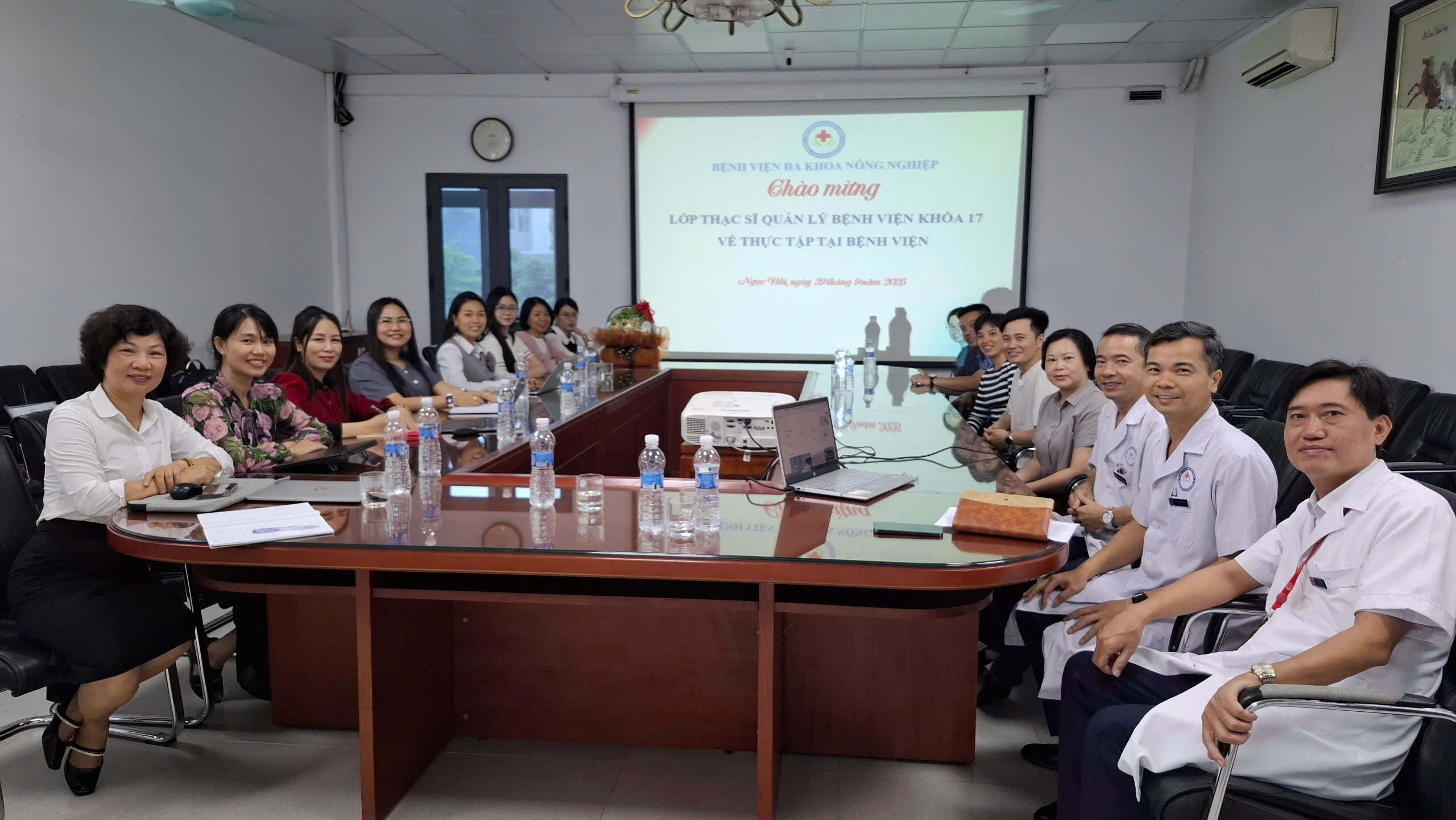 Ngày 29 tháng 9 năm 2025, Bệnh viện Đa khoa Nông nghiệp vinh dự đón tiếp đoàn học viên Lớp Thạc sĩ Quản lý Bệnh viện của Trường Đại học Y tế Công cộng đến tham quan, tìm hiểu và học tập thực tế tại bệnh viện. Đây là hoạt động nằm trong chương trình đào tạo cao học, nhằm tăng cường sự gắn kết giữa lý thuyết và thực tiễn, đồng thời tạo điều kiện để học viên tiếp cận môi trường quản lý và vận hành bệnh viện trong thực tế.