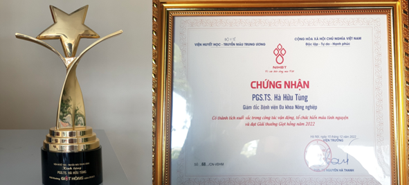 (PGS.TS.TTND Hà Hữu Tùng – Giám đốc Bệnh viện Đa khoa Nông nghiệp vinh dự nhận Giải thưởng Giọt Hồng)