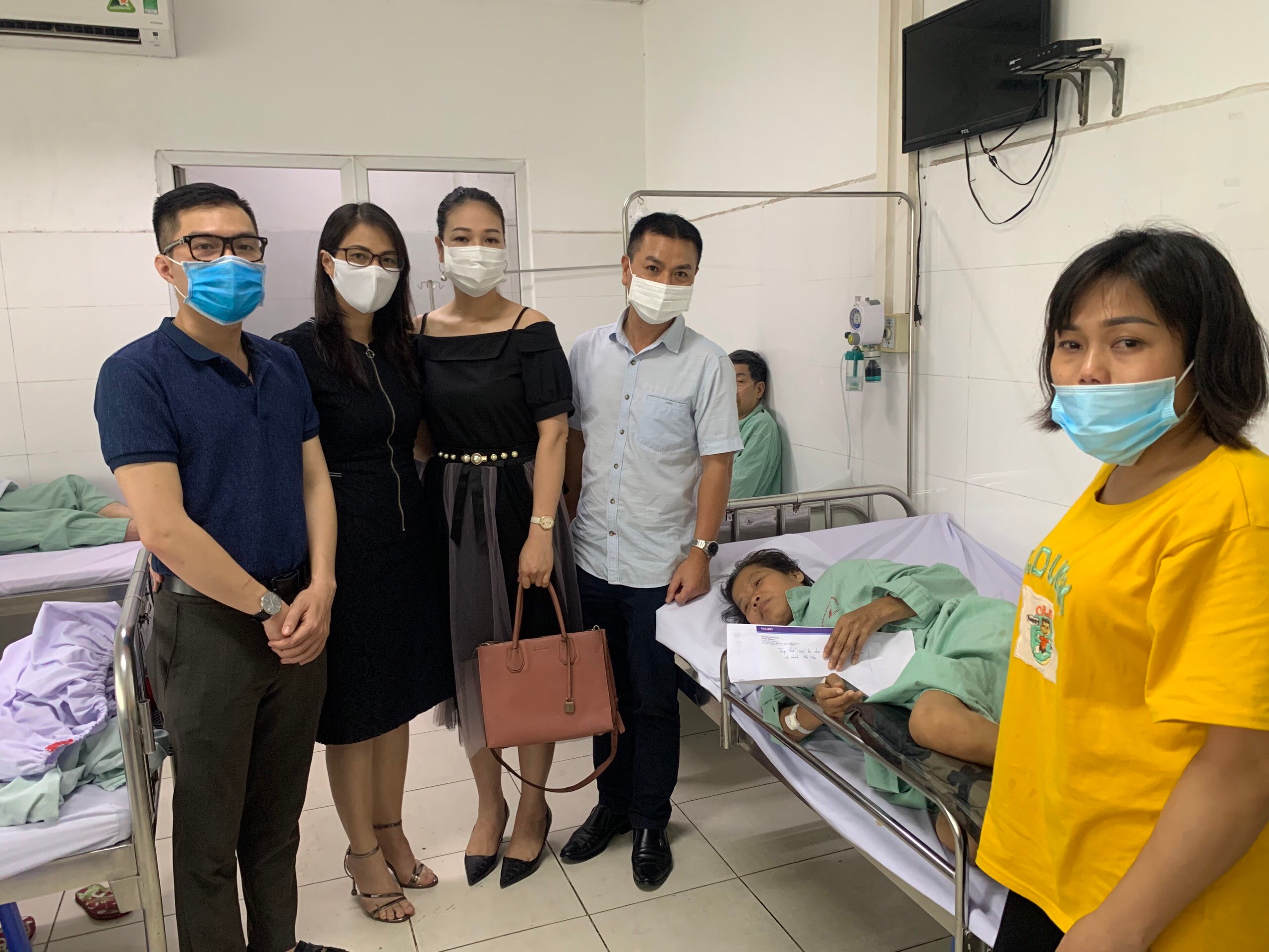Đại diện các anh/ chị đến từ ngân hàng Mizuho và tổ công tác xã hội gặp mặt, trao đổi chia sẻ hoàn cảnh khó khăn của bệnh nhân phải chạy thận 18 năm, gặp tai nạn gãy cổ xương đùi trái, đã mổ hiện đang nằm điều trị tại khoa ngoại chấn thương.