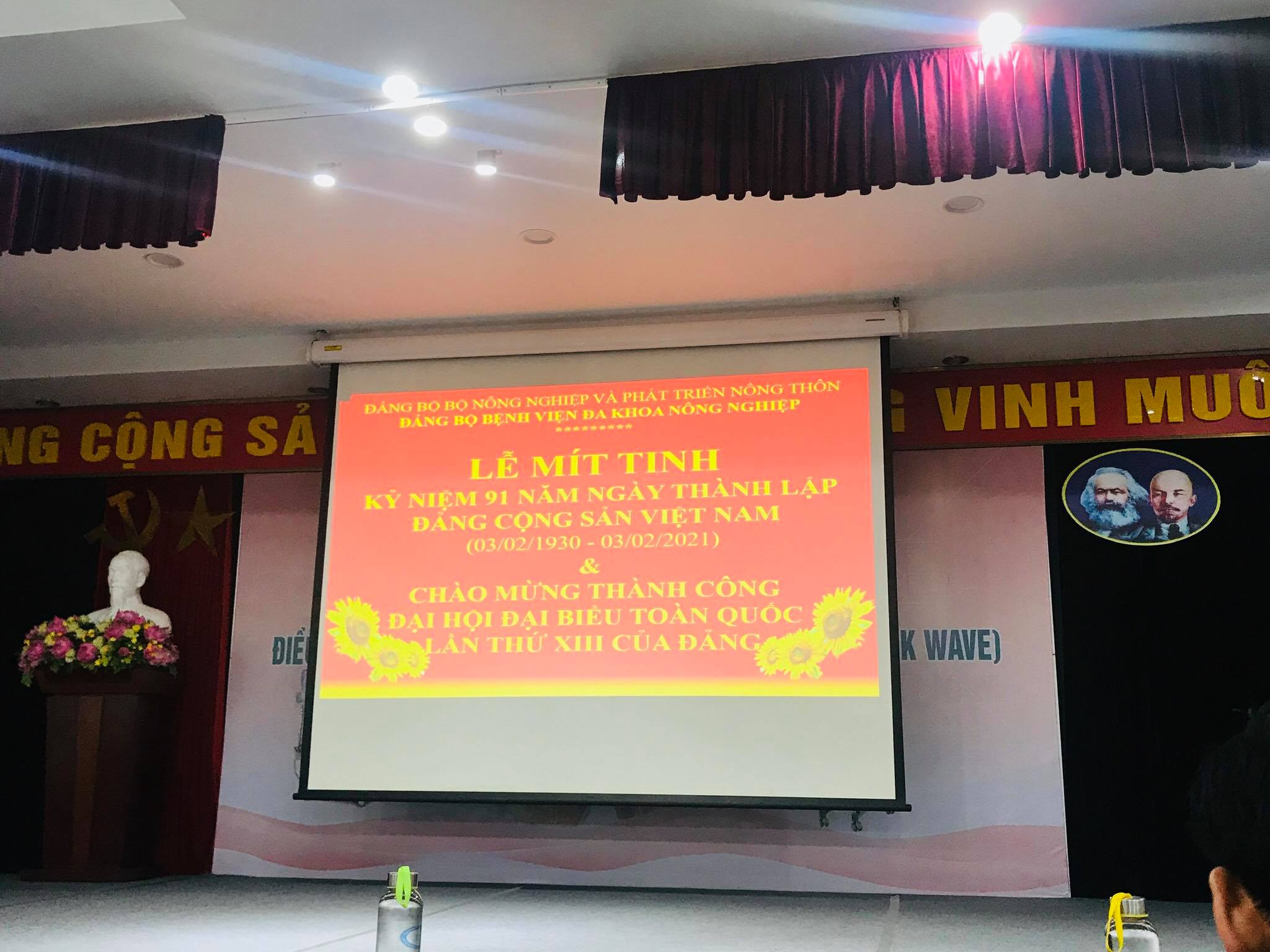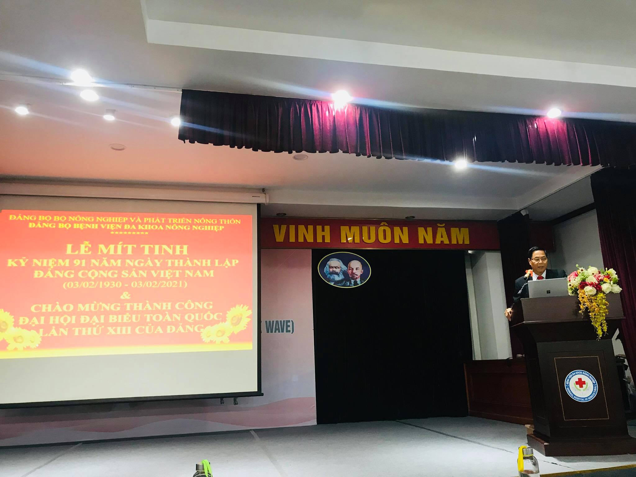 Chiều 2-2, được sự nhất trí của Đảng bộ Bộ Nông nghiệp và Phát triển nông thôn, Đảng Bộ Bệnh viện Đa khoa Nông nghiệp tổ chức Lễ mít tinh chào mừng thành công Đại hội Đảng toàn quốc lần thứ XIII và kỷ niệm 91 năm Ngày thành lập Đảng Cộng sản Việt Nam (3-2-1930/3-2-2021).