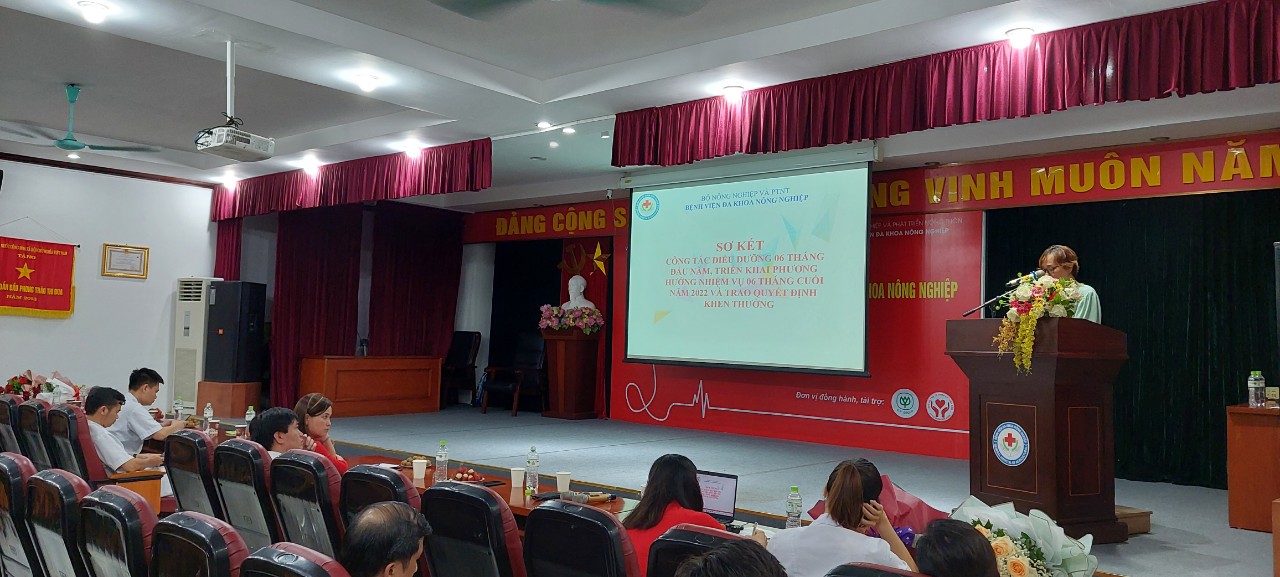 Vào hồi 14 giờ ngày 20 tháng 7 năm 2022 tại Hội trường tầng 9, Bệnh viện Đa khoa Nông Nghiệp diễn ra Hội nghị Sơ kết Công tác Điều dưỡng 06 tháng đầu năm, triển khai phương hướng nhiệm vụ 06 tháng cuối năm 2022 và trao Quyết định khen thưởng của Tổng hội Y học TP Hà Nội cho Chi hội Điều dưỡng Bệnh viện Đa khoa Nông Nghiệp; Quyết định khen thưởng của Hội Điều dưỡng Việt Nam cho đồng chí Lê Thị Mai Phương; Quyết định Khen thưởng của Tổng Hội y học Thành phố Hà Nội cho đồng chí Huỳnh Thị Minh Thu.