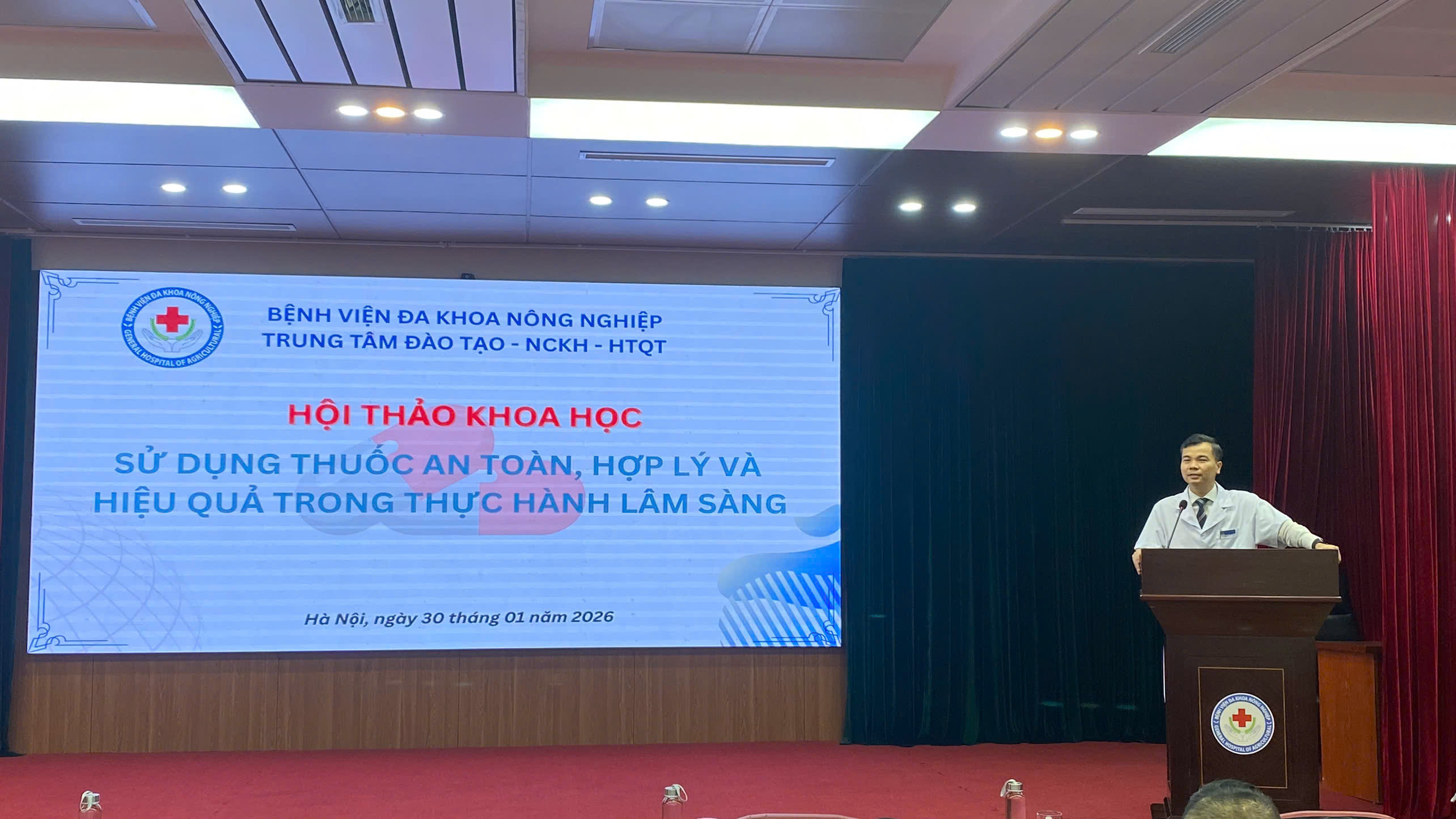 Nhằm cập nhật kiến thức chuyên môn và nâng cao hiệu quả sử dụng thuốc trong thực hành lâm sàng, chiều ngày 30/01/2026, Bệnh viện Đa khoa Nông nghiệp tổ chức hội thảo chuyên đề dược lâm sàng với chủ đề “Sử dụng thuốc an toàn, hợp lý và hiệu quả trong thực hành lâm sàng”.