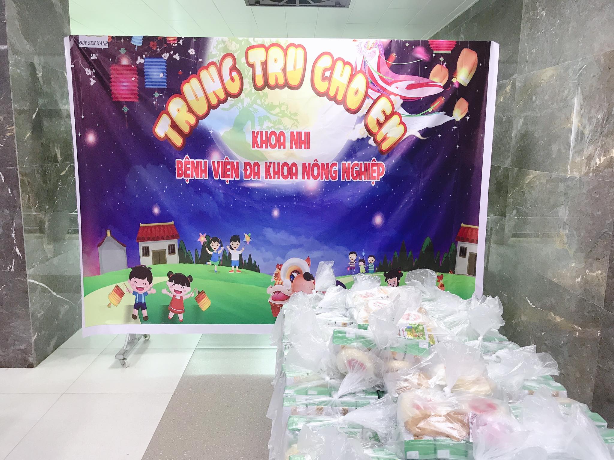 Nhằm góp phần đem niềm vui đến cho các cháu thiếu nhi, ngày 30/9 và 1/10/2020, Ban lãnh đạo Bệnh viện đã tài trợ 10 triệu đồng giao cho Công đoàn và Đoàn thanh niên Bệnh viện đồng hành cùng Phòng Quản lý chất lượng, tập thể y bác sỹ khoa Nhi, Trung tâm tiêm chủng của Bệnh viện và đặc biệt hơn hết là sự ủng hộ của mạnh thường quân, nhà hảo tâm HTT Búp sen xanh và CLB.BC đã tổ chức tặng hàng trăm quà trung thu (bánh, sữa, quần áo) cho các bé đang đang điều trị tại khoa Nhi, Trung tâm chăm sóc sơ sinh – tầng 8 Bệnh viện Đa khoa Nông nghiệp, các bé đến tiêm vắc xin tại Trung tâm tiêm chủng tầng 2 của Bệnh viện, các bé đang điều trị tại một số khoa như: Khoa Ngoại Tổng hợp, khoa Ngoại Chấn thương của Bệnh viện.