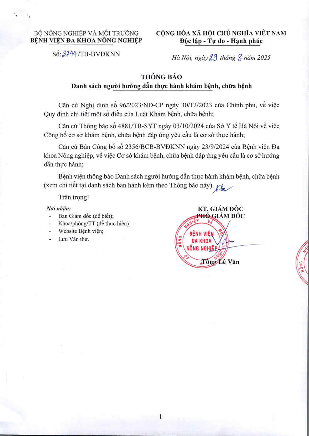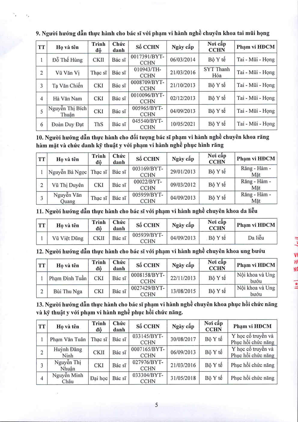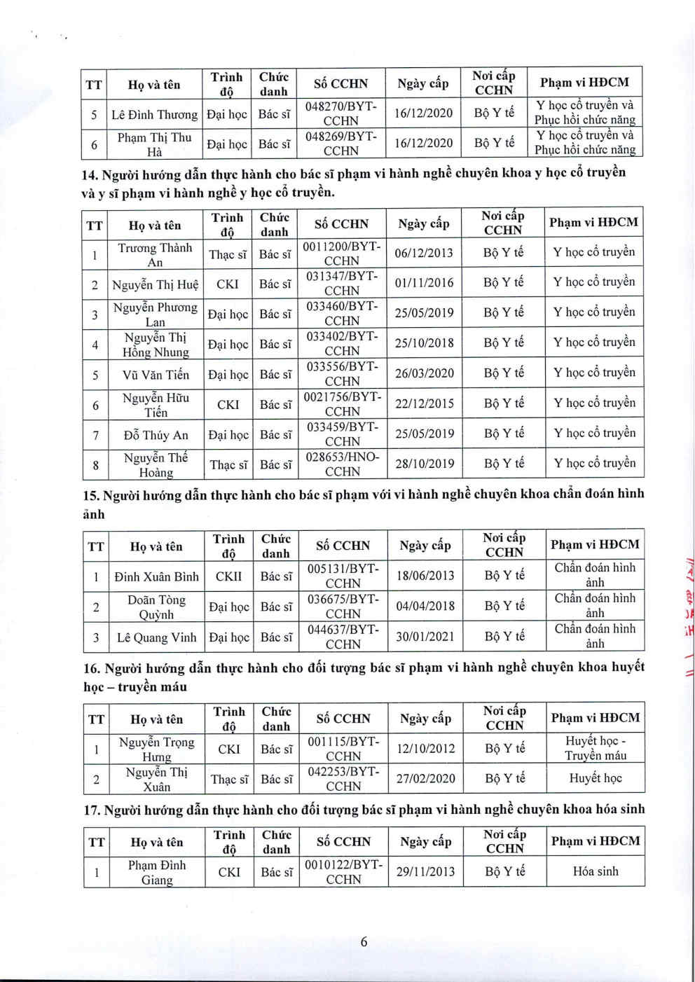Thông báo danh sách người hướng dẫn thực hành khám bệnh, chữa bệnh