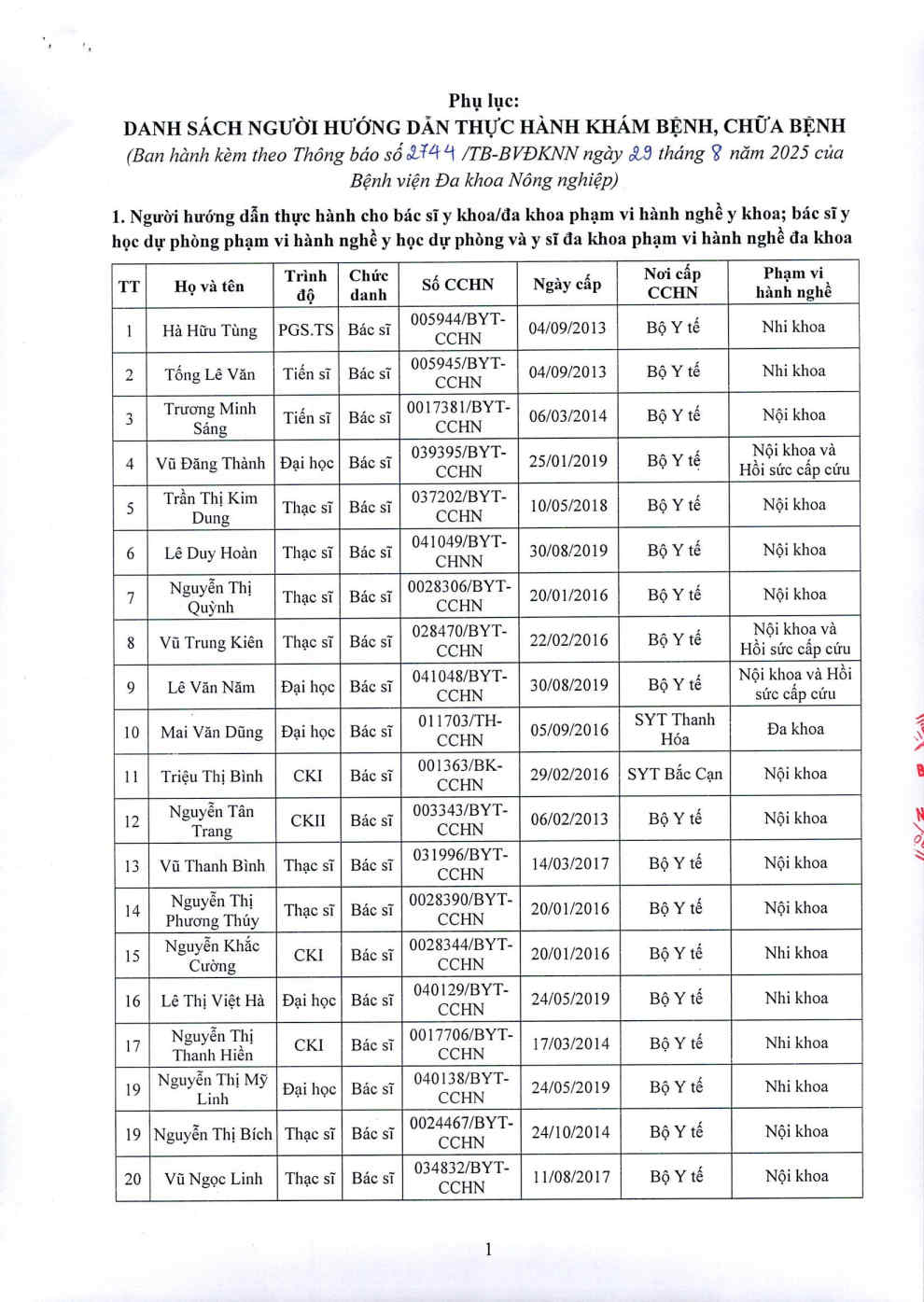 Thông báo danh sách người thực hành Khám bệnh, chữa bệnh (tháng 11/2025)