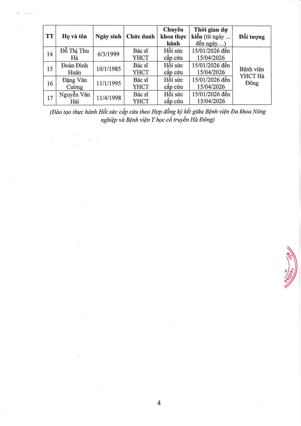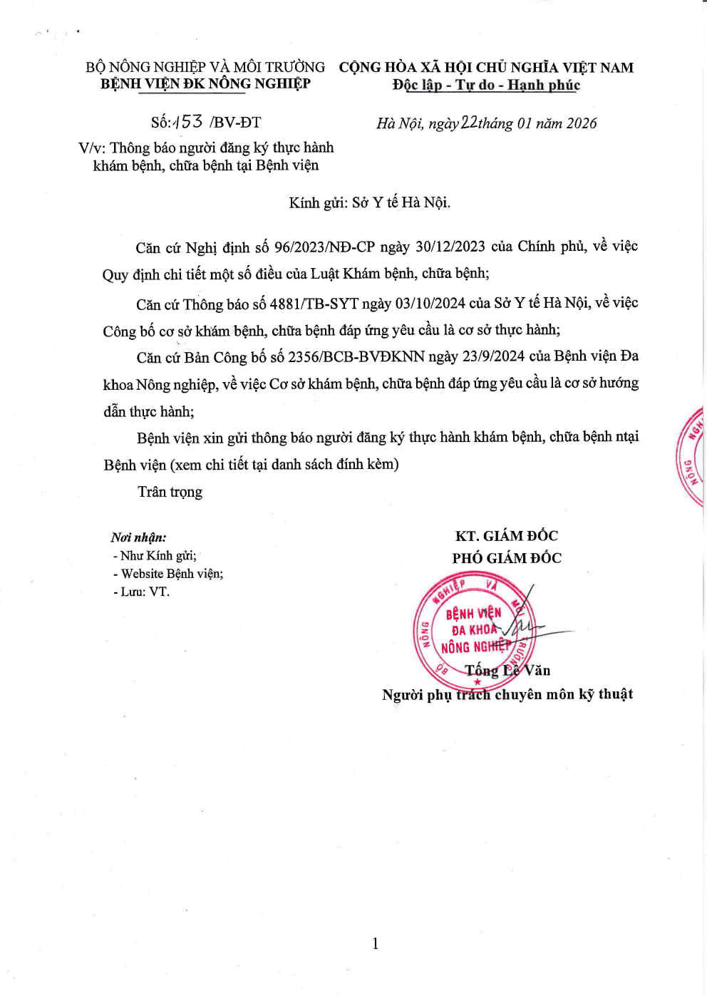 Thông báo người đăng ký thực hành khám bệnh, chữa bệnh (tháng 01/2026)